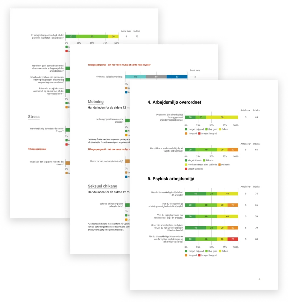 - Foruden handlingsplanerne udleveres pdf-filer med Quick APV spørgeskema-resultaterne (fysisk og psykisk), som sikre at alle lovpligtige emner berøres og som bruges til mindsetting af deltagerne.